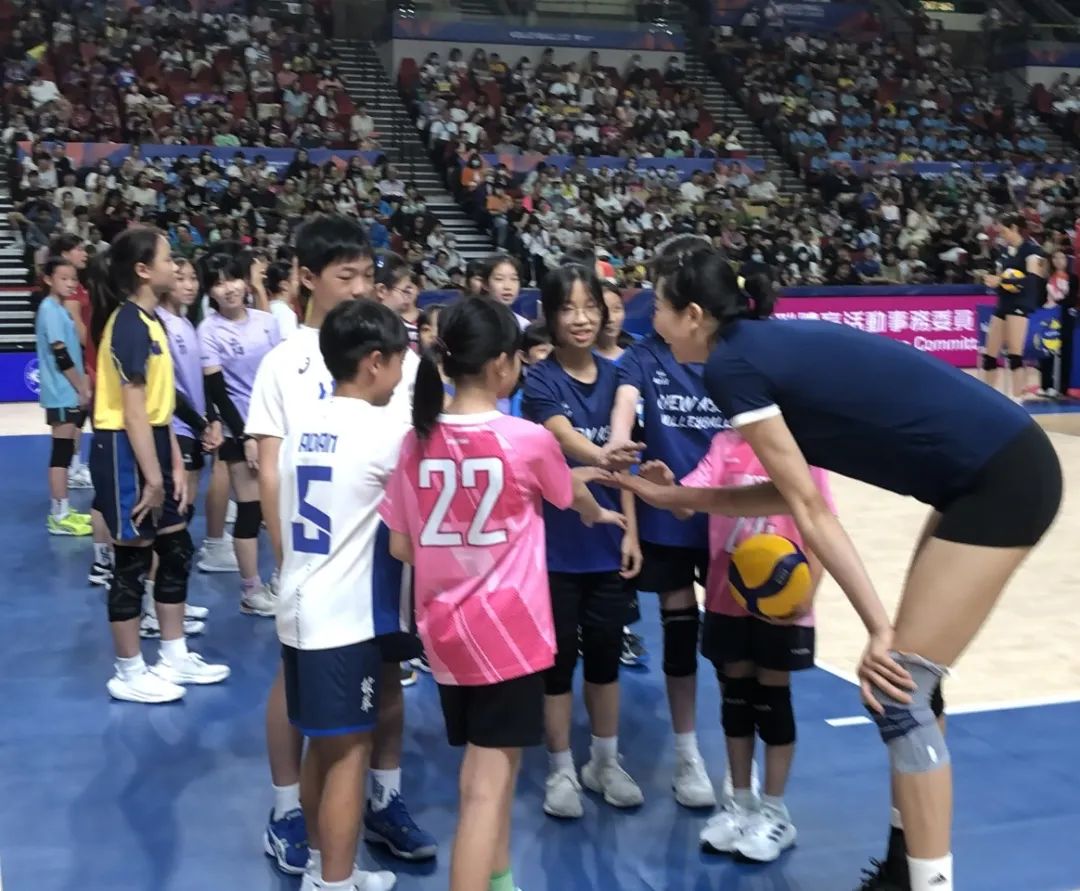 现场不仅能“看”,更能“打”。中国女排球员还亲自指导香港青少年学生排球技巧,与他们进行上手升球、下手垫球和扣杀等练习,双方更进行了“3打3”比赛,学生们在专业指导下精准击球,有小朋友接连接住女排队员的扣球,惹得全场掌声欢呼连连。而中国香港青年女排队员则获安排与中国女排部分球员进行“6打6”对抗赛,双方频频扣杀,让观众叫好。