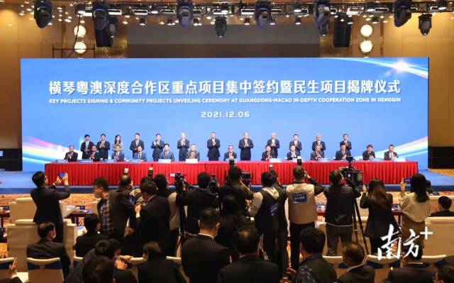 12月6日下午,在珠海长隆横琴湾酒店,横琴粤澳深度合作区举行了重点项目集中签约暨民生项目揭牌仪式。现场,12个重点项目集中签约、4个民生机构揭牌启用。
