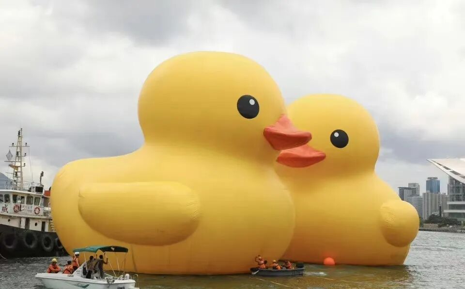 发现大黄鸭皮因天气炎热