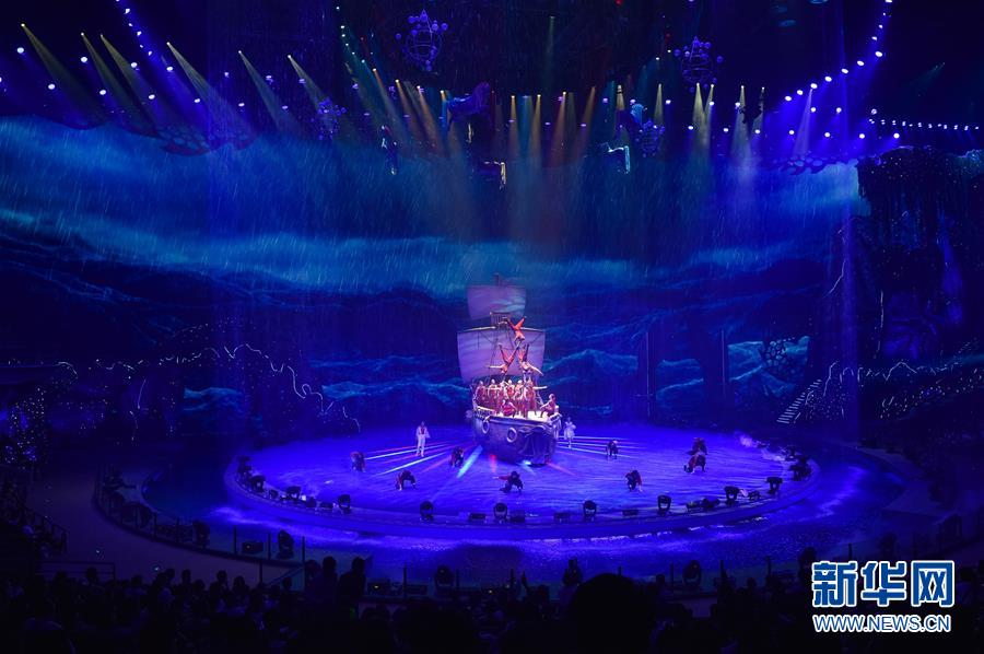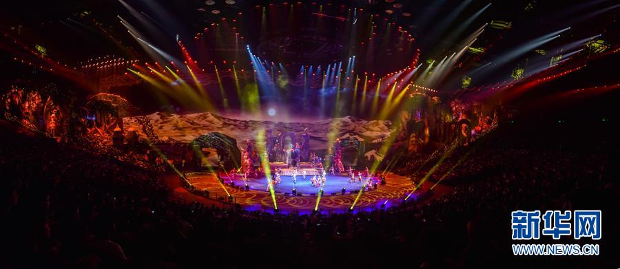 原创国际马戏大剧《龙秀》的270°环形舞台(7月26日摄)。新华社记者刘大伟摄