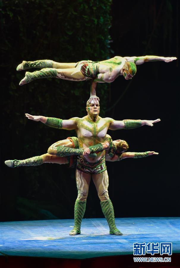 原创国际马戏大剧《龙秀》当中的杂技表演(7月26日摄)。新华社记者刘大伟摄