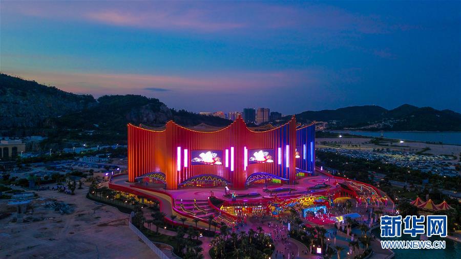 原创国际马戏大剧《龙秀》演出场地是位于珠海横琴国际休闲旅游岛,总建筑面积7.1万平方米,拥有6700个座位的珠海长隆剧院(7月26日无人机拍摄)。新华社记者刘大伟摄