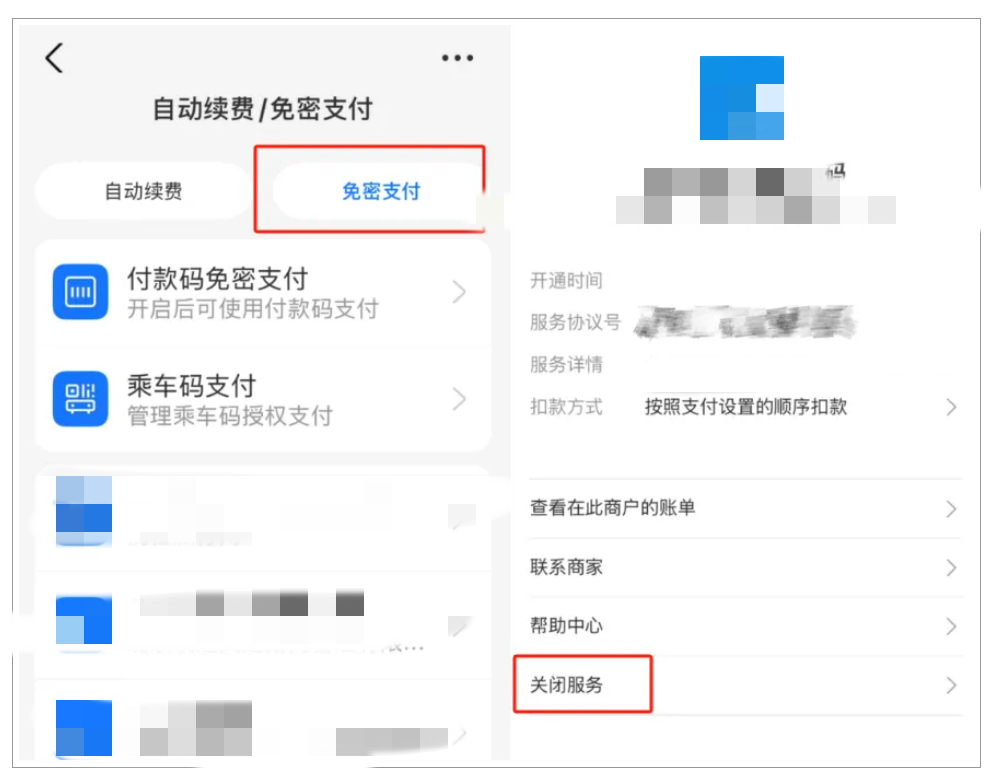 打开支付宝→点击右下角“我的”→右上角齿轮状“设置”→“支付设置”→“自动续费/免密支付”,选择“免密支付”→选择相应App后点击“关闭服务”。