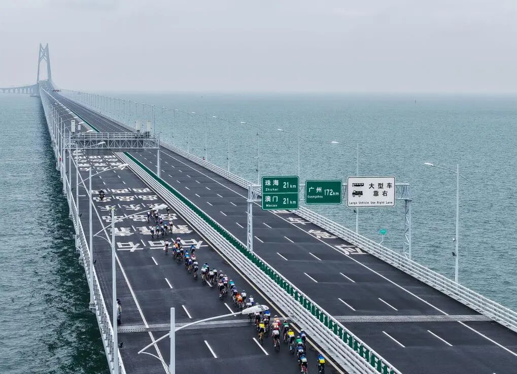 △2024年11月24日,参赛选手在港珠澳大桥上骑行