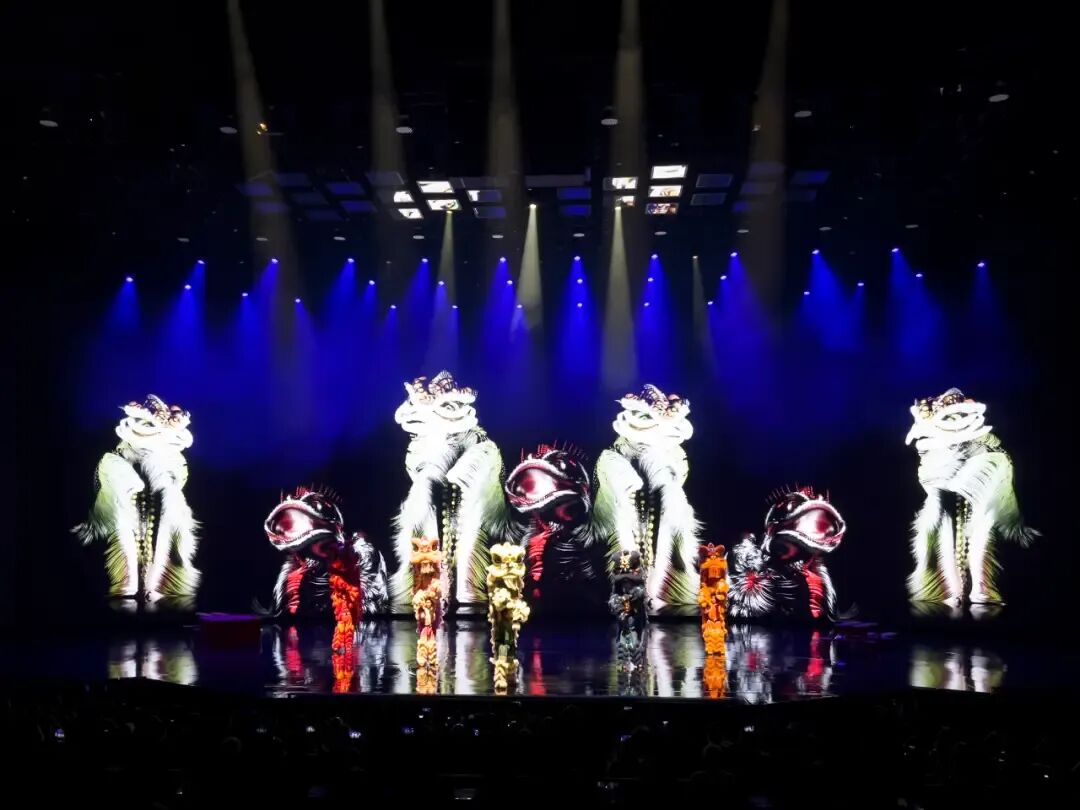 当机械臂随西北花儿的旋律精准起落,当仿生飞鱼伴着彝族古歌穿梭于虚拟海洋,80分钟,观众仿佛跨越一万两千公里,从蒙古草原的呼麦声里直抵岭南舞狮的光影中,这不是科幻电影,而是张艺谋导演的《澳门2049》的震撼现场。