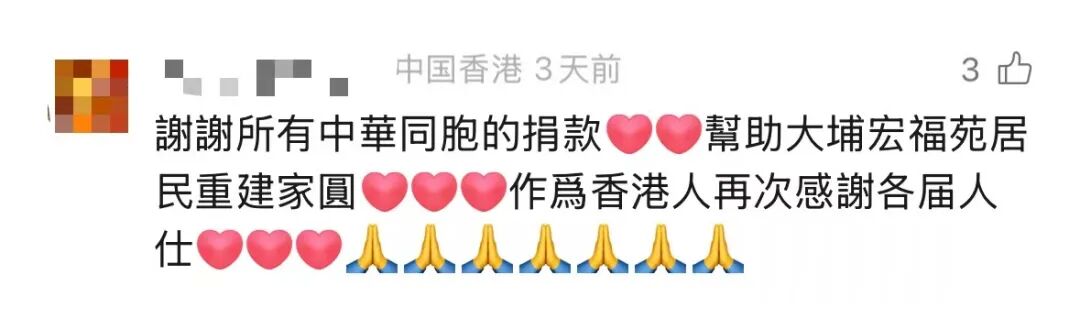 有中央的坚定支持、特区政府的全力以赴、社会各界的齐心配合以及全国各地兄弟姐妹的并肩同行,香港定能抚平伤痛、克难前行,帮助受灾居民早日重建家园。