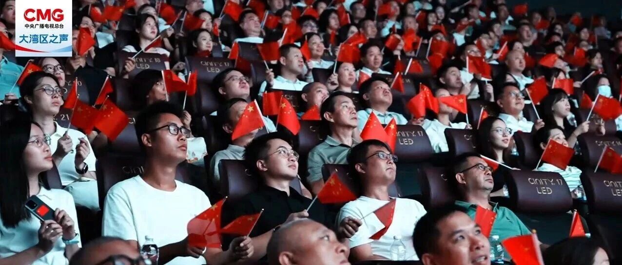 在广东的影院,大家挥舞着国旗,眼中泛起激动的泪花