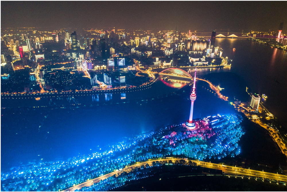 4月8日零时起,武汉市正式解除离汉离鄂通道管控措施。这是4月7日晚在武汉龟山拍摄的夜景(无人机拍摄)。资料图