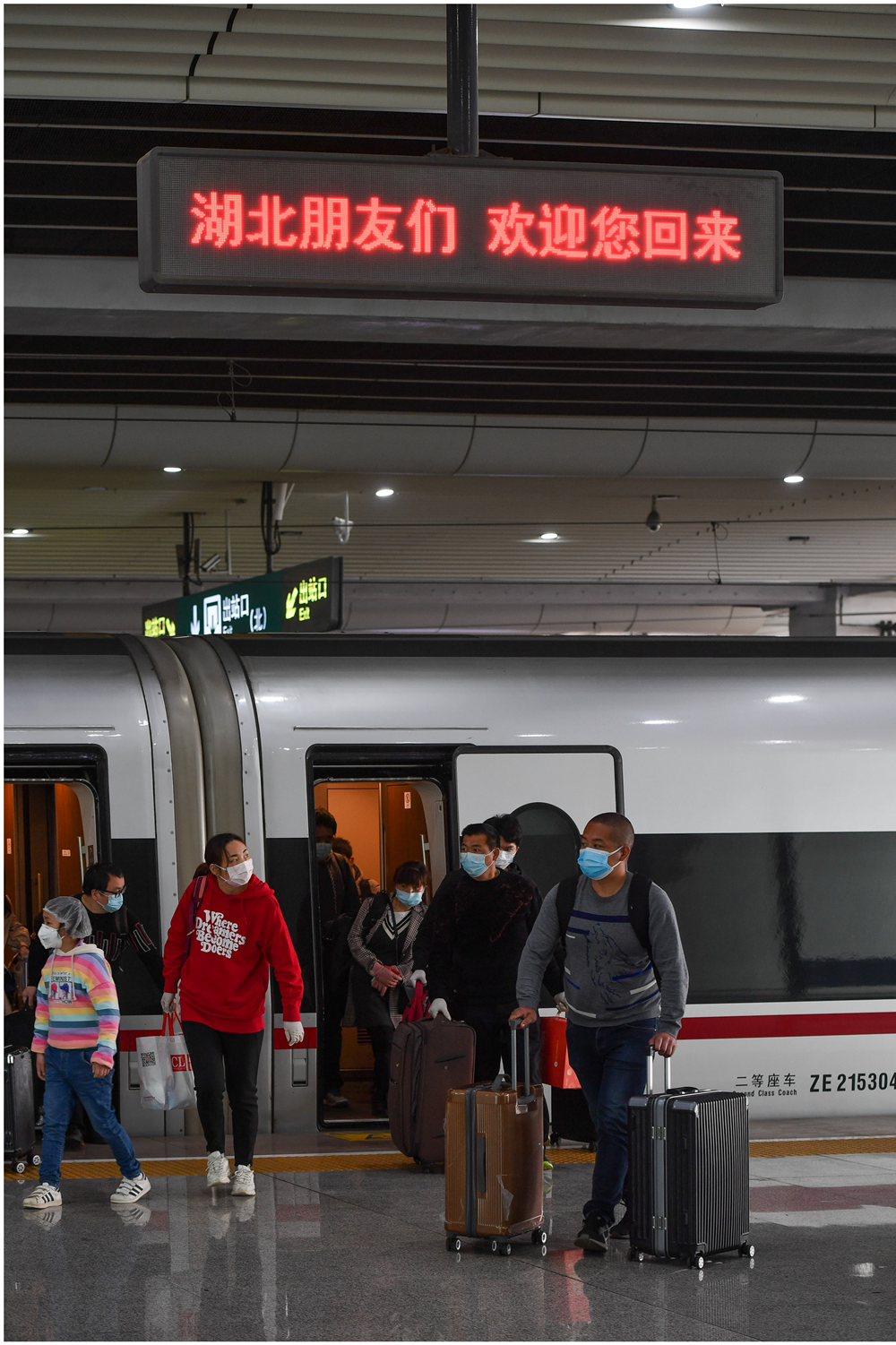4月8日零时起,武汉正式解除离汉离鄂通道管控。当天,有276列旅客列车从武汉各站开往上海、深圳、成都、福州、南宁等地,从车票预售情况预计有5.5万余名旅客乘坐火车离汉,其中去往珠三角的旅客占离汉旅客总量四成左右,逾两万名旅客当日乘火车从武汉到珠三角。