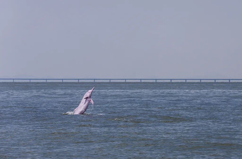在港珠澳大桥游的过程中,游客不仅可近距离游览“风帆”造型的九洲桥、“海豚”造型的江海桥、“中国结”造型的青州桥三座通航孔桥,还可能偶遇有“海上大熊猫”之称的中华白海豚。