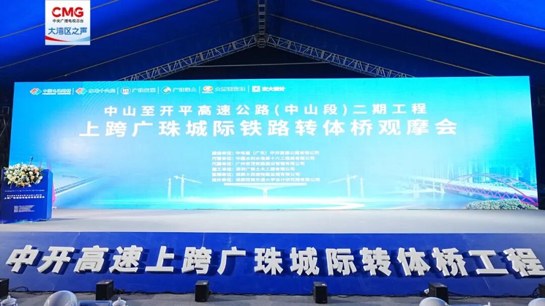 今日0时15分,上跨广珠城际铁路桥转体启动仪式过后,身躯庞大的转体桥犹如巨龙酝酿“动身”,转体施工拉开序幕。