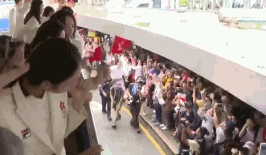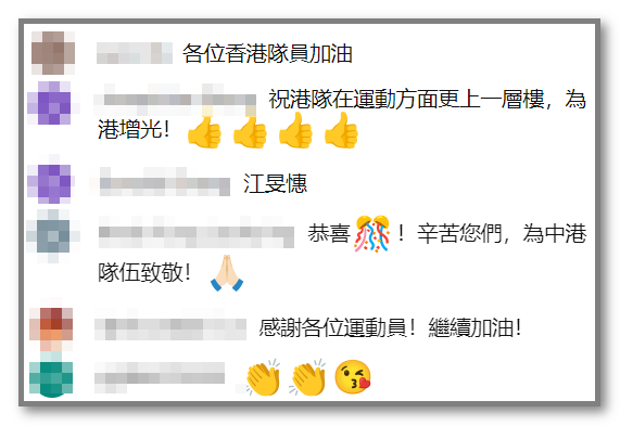 港队运动员也挥舞香港特区区旗,热情地向市民游客挥手。有市民表示,港队健儿如此努力,为香港取得荣誉,就算下再大的雨,也要到场跟他们说一声“加油”,让他们感受到,香港市民对他们的支持。市民关小姐表示,港队运动员很辛苦,锻炼很久,很用心地比赛,才能有此次奥运这么亮眼的成绩,自己一定要前来支持他们。还有带着孩子的市民表示,希望小朋友学习运动员们努力拼搏、坚持不懈的精神。