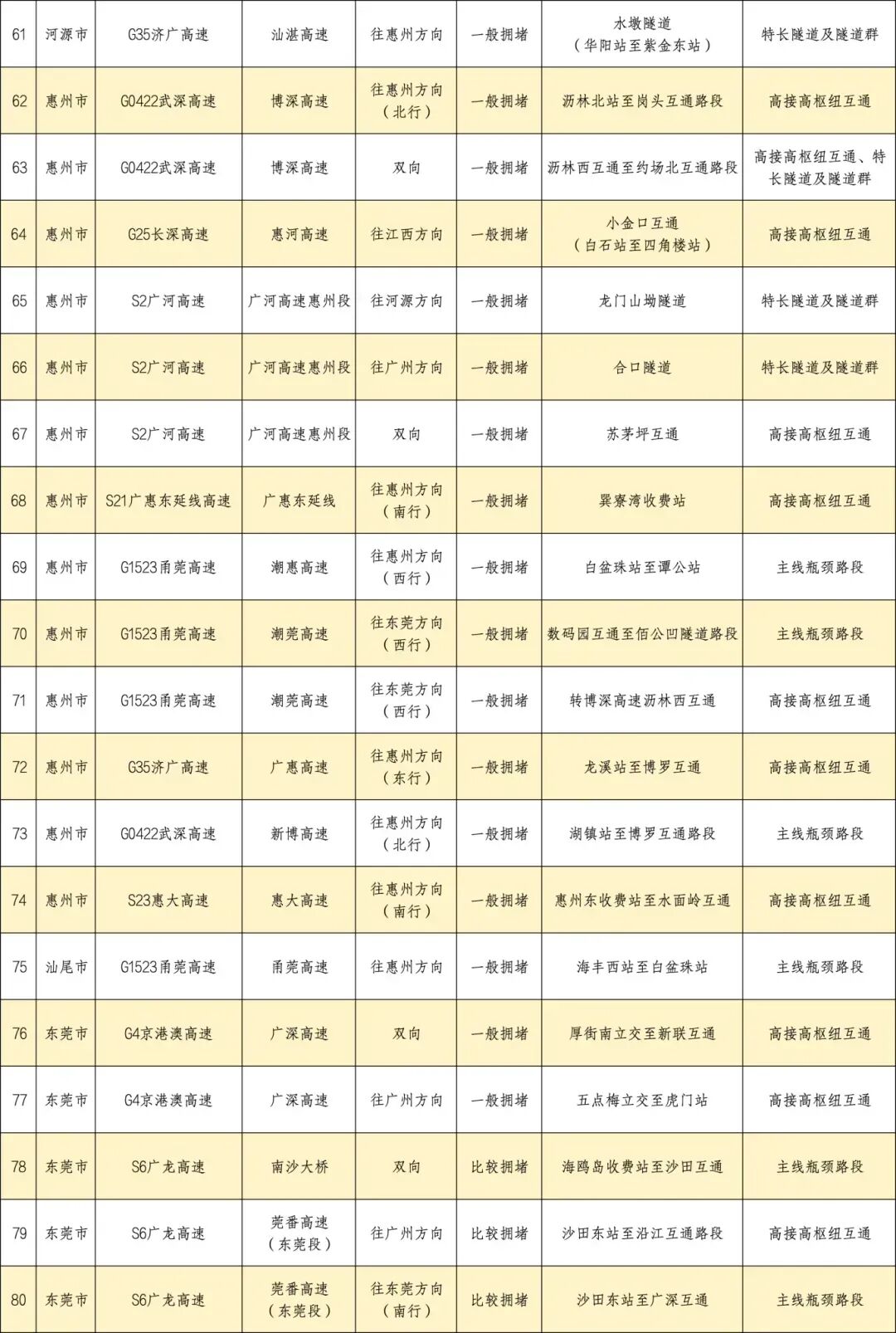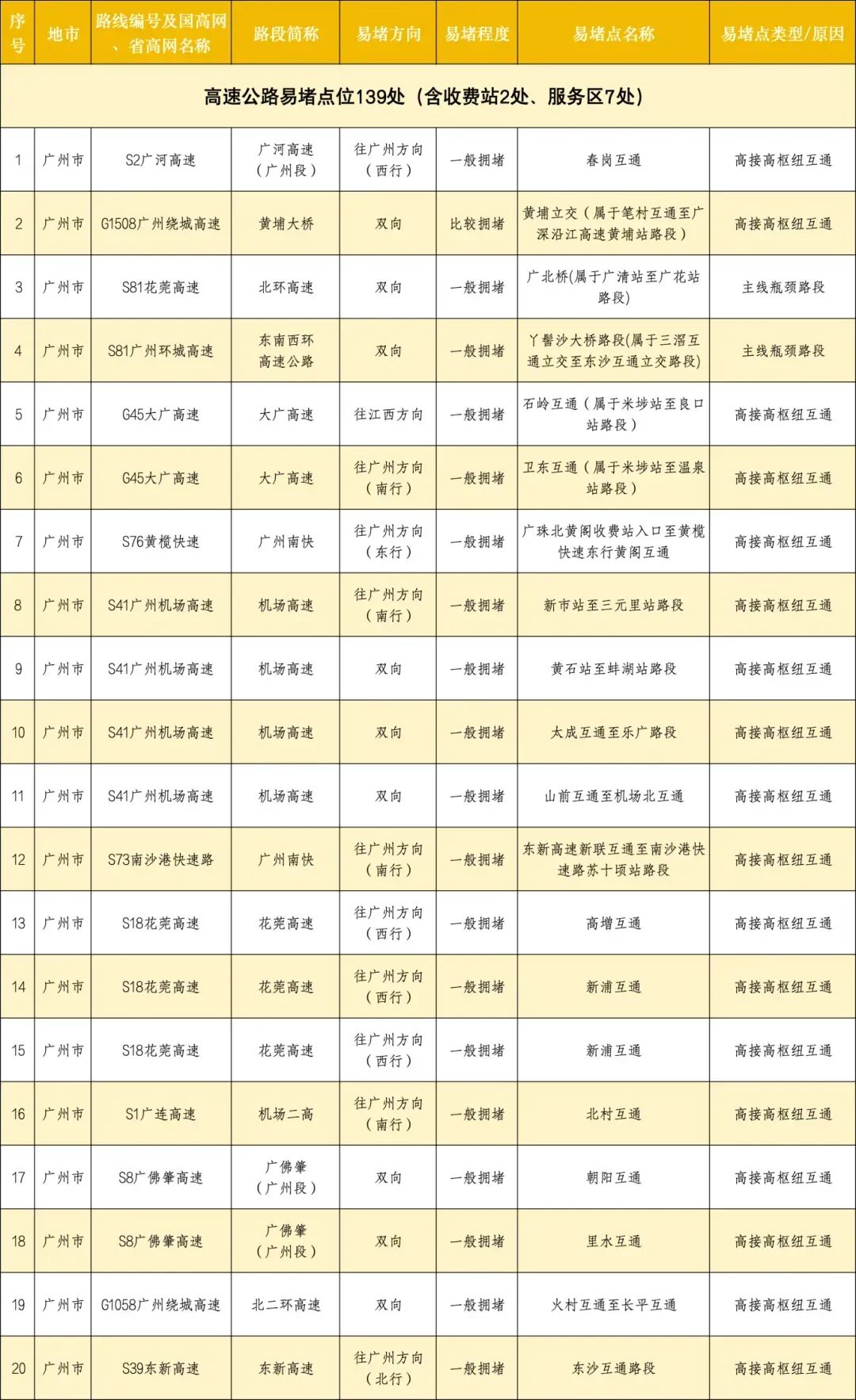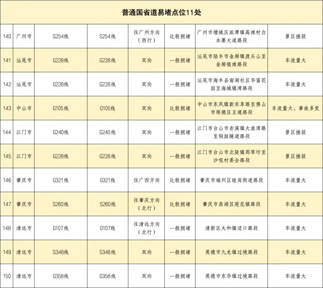 国庆假期,高速公路交通流量将大幅增加,广东省公路易堵点位公布。