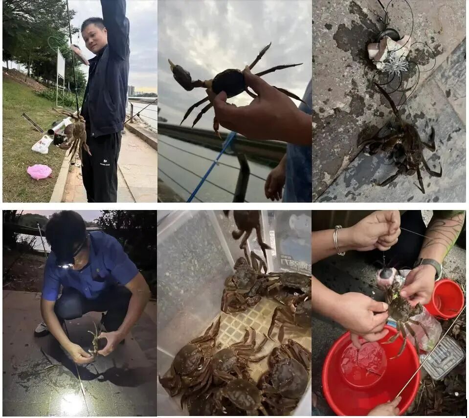 不少人在社交媒体上分享了自己的钓蟹成果,闻“蟹”而动的人也越来越多,广州、深圳的许多垂钓爱好者纷纷慕名而来。有经验丰富的垂钓爱好者介绍:“晚上5点到10点左右螃蟹是最好钓的,白天不建议钓,因为白天螃蟹不开口,不好上钩。”据了解,螃蟹属于夜行性动物,白天它们喜欢躲藏在水底的石块下、土洞或石缝中。而在夜晚,它们会出来活动和觅食。螃蟹还具有敏锐的视觉,在非常微弱的光线下也能有效地寻找食物并逃避危险。这个热门钓蟹点的具体位置在东莞市东江大道东城段红荔路附近,附近的垂钓爱好者表示,东江里的螃蟹可能是自然生长的,每天会随着涨潮带上岸边。在社交平台上,有不少人表示自己钓到了大闸蟹。对此,江边街坊们表示:这也反映了东江的水质变好了。