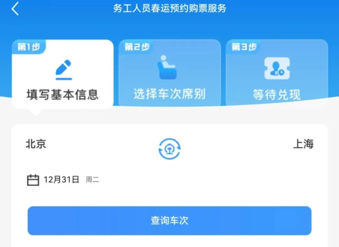 - 务工人员可提交开车前17天(含)以上的预约购票需求,最晚可预约2025年2月23日的车票;