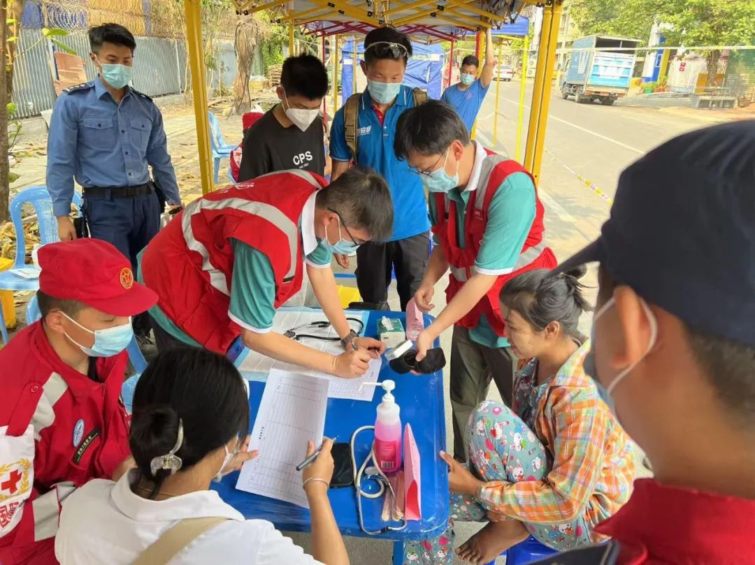 从4月4日起,缅甸震后救援进入疫情防控和恢复重建阶段。目前,震中曼德勒市的医院只接收急诊病人,普通的病症医院暂时无法接收。因此,由多支中国救援力量组成的义诊小分队直接把义诊点开到了受灾群众集中的大皇宫附近,为患者提供医疗救助。