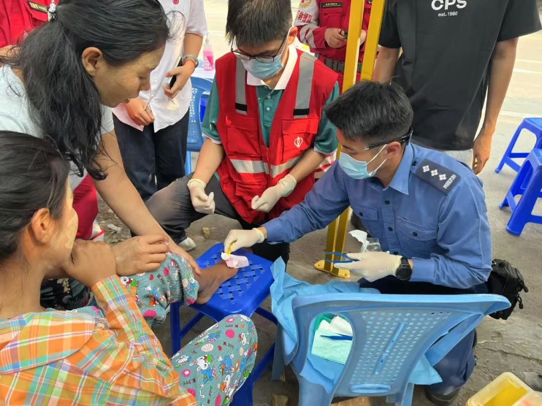 中国香港特区救援队随队医生、香港特区政府消防处高级救护主任萧景辉与另一位消防处救护总队长,以及医管局的一名医生和护士,携带测量维生素的仪器、处理伤口的消毒用品等医疗装备参与了此次义诊服务。