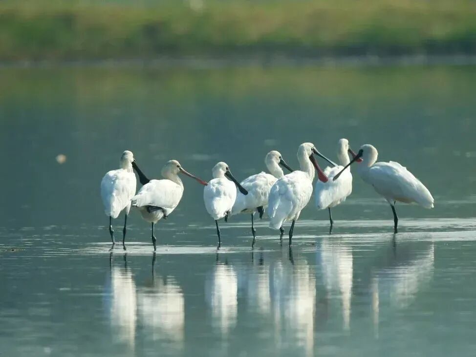 在深圳湾公园,大家能看到的鸟类有黑脸琵鹭、琵嘴鸭、赤颈鸭、针尾鸭、绿翅鸭、凤头潜鸭等……