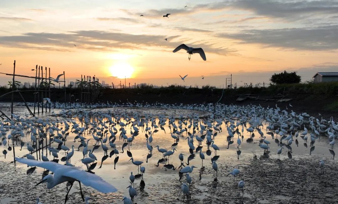 候鸟的青睐,也催生了滨海湾独特的“打鸟”文化,时常会有观鸟爱好者扛着“长枪短炮”和望远镜等专业设备,捕捉空中飞翔或在河滩上行走觅食的各种鸟类倩影。