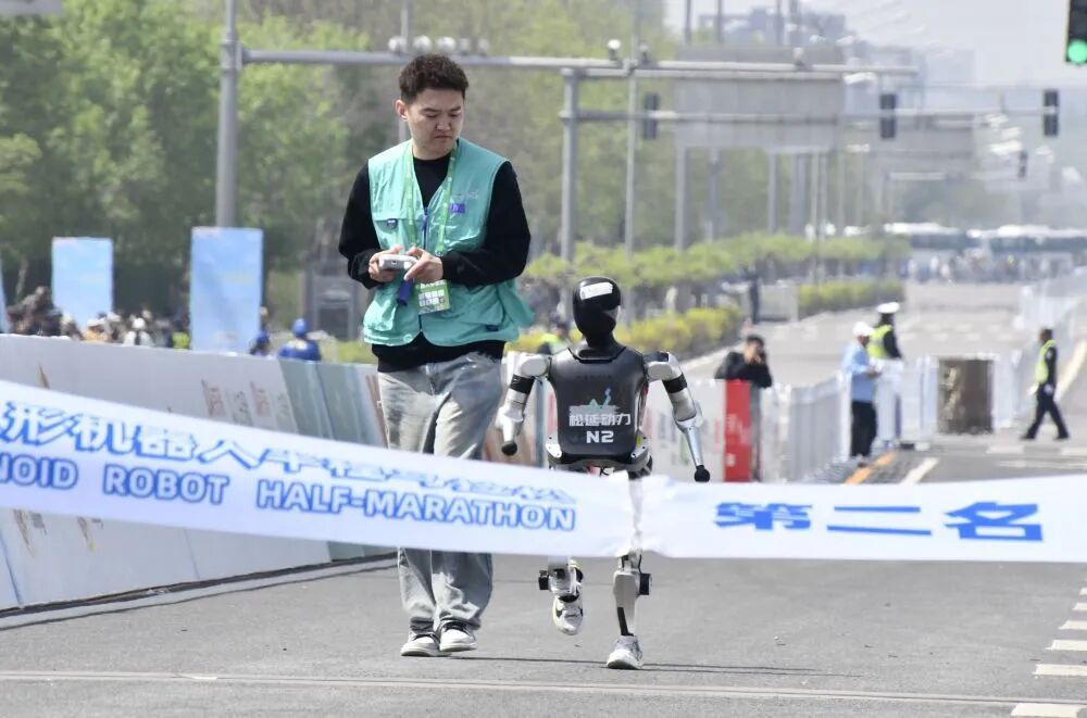 香港《南华早报》也报道了比赛中的戏剧性一幕:有人形机器人意外跌倒后静卧数分钟,最终自主站起时,围观群众自发热烈鼓掌。报道称,这场在全球尚属首次的人机同台半程马拉松,展现着中国领跑尖端科技赛道的雄心。不仅测试了机器人的地形适应能力,更成为观察中国智能制造业协同创新的绝佳窗口。