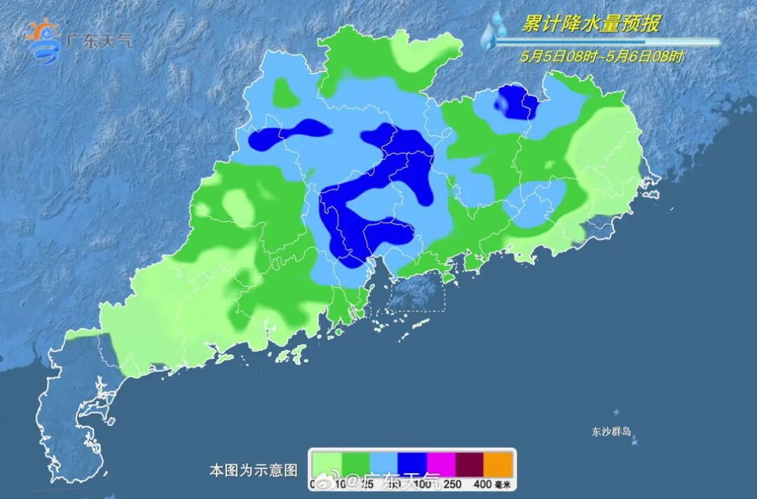 预计,4日-5日,粤北、珠江三角洲有大雨局部暴雨或大暴雨,其余市县有雷阵雨局部大雨,雷雨时部分市县伴有短时强降水、7~9级短时大风;6日,珠江三角洲西部、阳江有中到大雨局部暴雨;7日,中北部市县有中雷雨,局地暴雨。截至5月4日11时13分许,广东省共有10个暴雨预警信号生效中。
