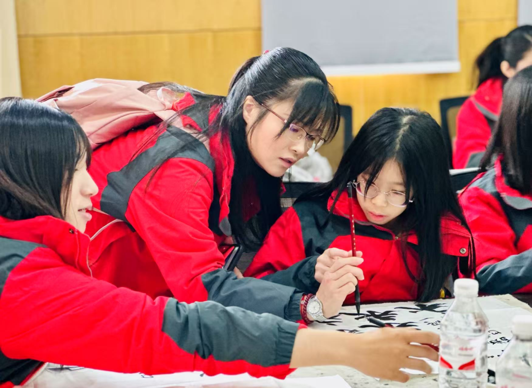△鲁迅青少年文学奖“走进江南?书写中国”,金老师指导学员写书法