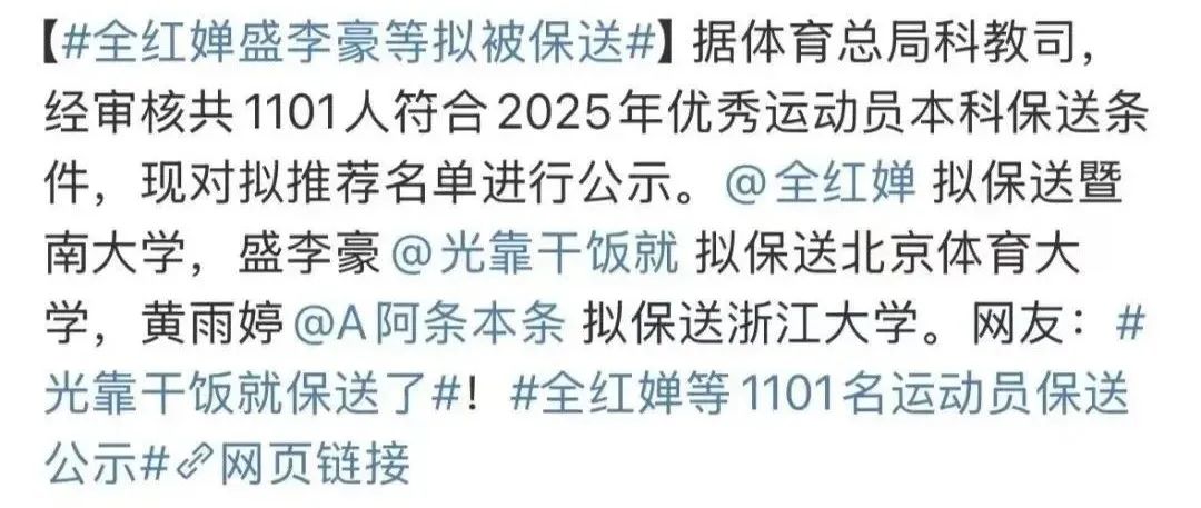话题#全红婵等1101名运动员保送公示#