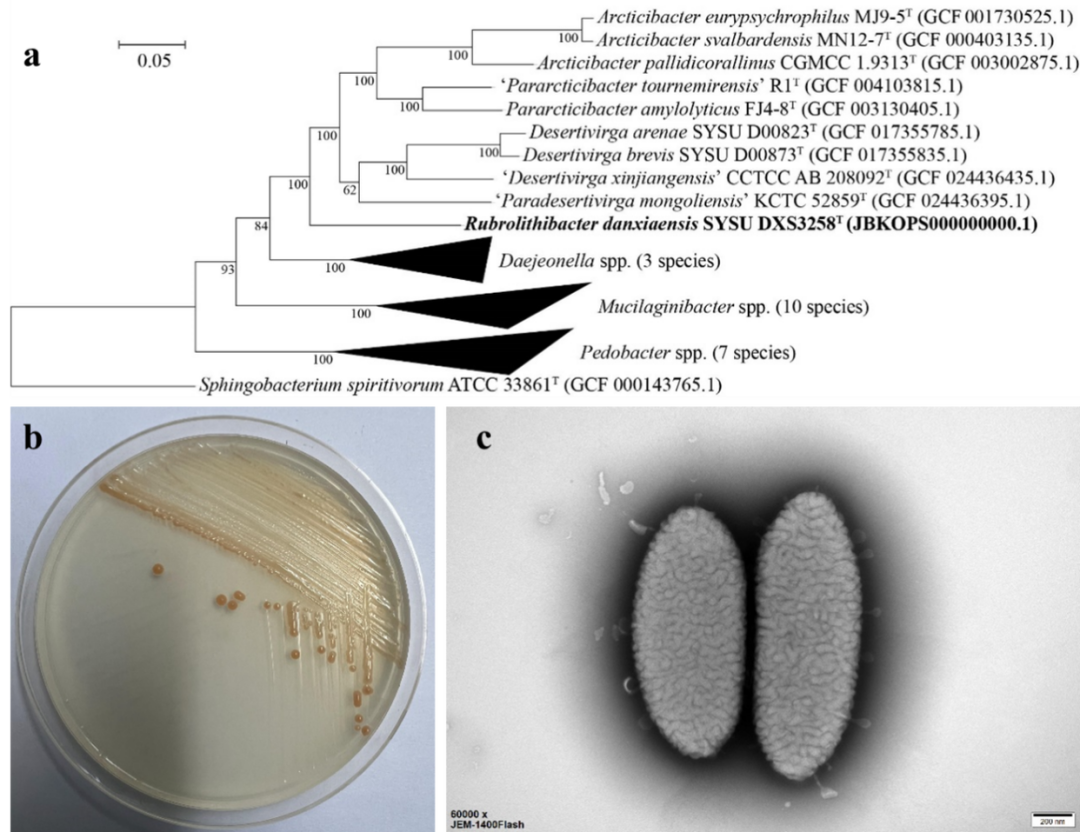 研究人员从多个角度对它进行了全面分析,数据综合证明:这一菌株不仅是一个新种,还代表着一个前所未有的新属。团队因此将其命名为丹霞红岩杆菌(Rubrolithibacter danxiaensis),意为“来自丹霞红岩的细菌”。