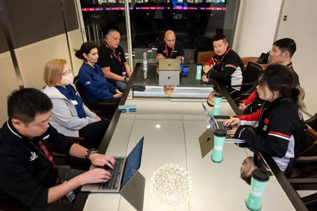 中国乒协主席王励勤、中国乒协秘书长何潇、国际乒联竞赛团队、裁判团队以及球拍检测团队负责人参加本次会议。