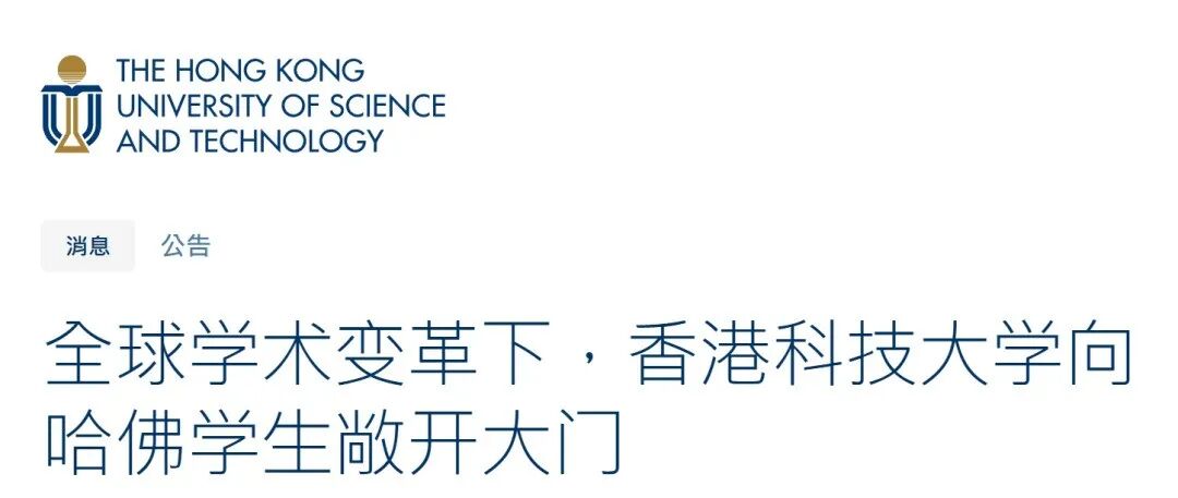 香港科技大学今日(23日)宣布,诚邀目前就读于哈佛大学的国际本科生和研究生,以及已获哈佛学位课程录取的国际学生,来港科大继续深造。港科大表示,此举旨在顺应全球学术格局的演变,并进一步彰显该校致力于打造多元化、世界一流学习环境的承诺。
