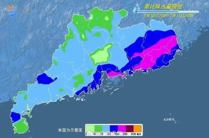 今日(11日),记者从广东气象部门获悉,当天,河源、梅州、粤东和珠三角中东部市县有大雨到暴雨局部(特)大暴雨。其余市县有中到大雨局部暴雨。雷雨时伴有8-10级短时大风。广东东部市县已出现强降水,11日强降水雨区与之重叠,土壤含水量高,需防范强降水导致的城乡积涝、山洪以及泥石流、滑坡、崩塌等地质灾害。