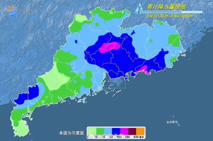 3-4日,珠江口东侧和粤东市县有暴雨到大暴雨,局部特大暴雨,珠三角中北部、粤北偏南和粤西市县有大雨到暴雨局部大暴雨,其余市县有中(雷)雨局部暴雨。最高气温:雷州半岛介于33~35℃,其余大部市县介于29~32℃。