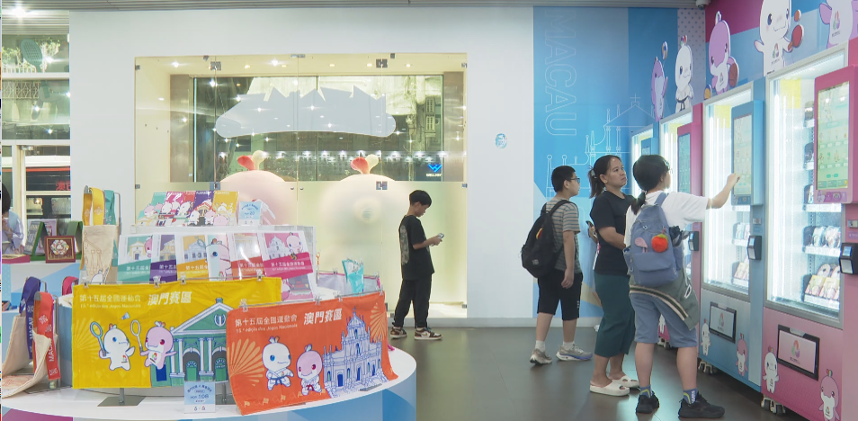 澳门赛区官方特许商品零售店位于塔石体育馆展览厅,店内展示并销售多款以吉祥物“喜洋洋”“乐融融”为主题的官方特许商品,涵盖玩偶、纪念徽章、生活用品及工艺品等。现场还设有打卡拍照装置,打造沉浸式全运体验空间,让市民和游客提前感受全运会澳门赛区的热烈氛围。