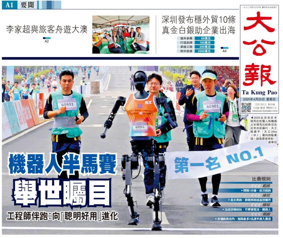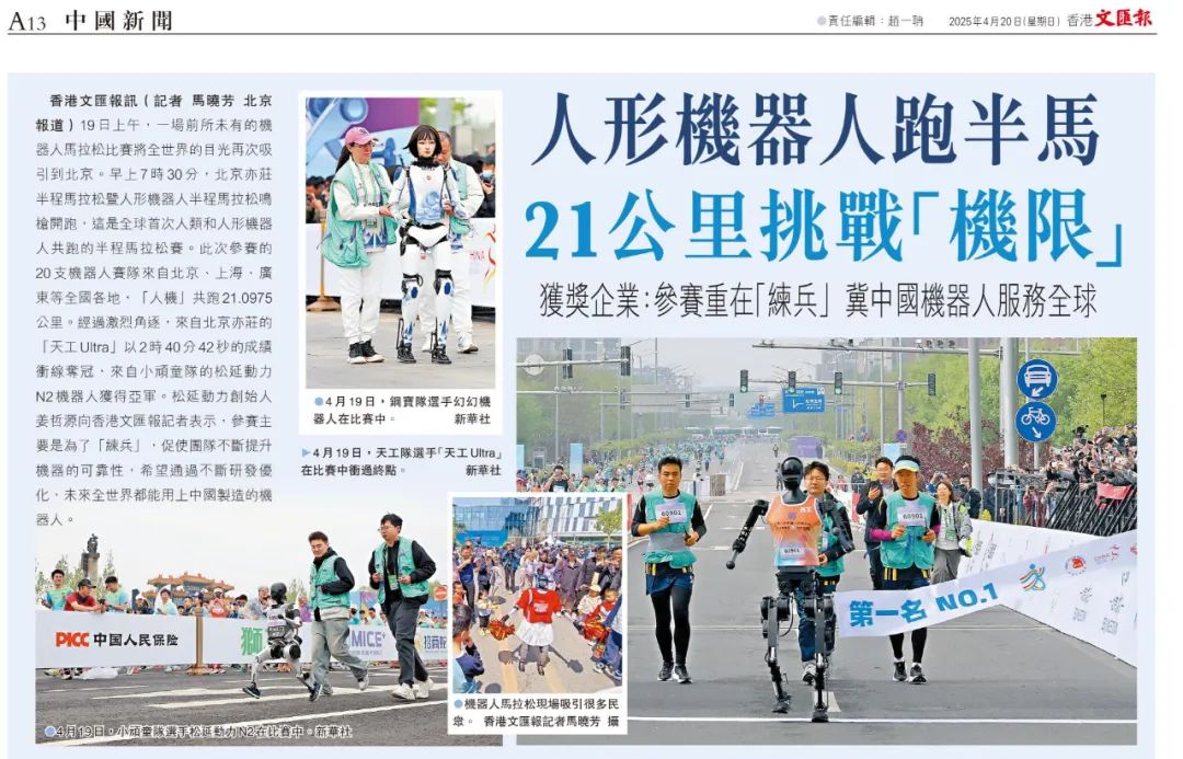 4月,全球首个人形机器人半程马拉松比赛在北京亦庄鸣枪开跑,许多香港媒体也关注到了这场比赛。香港《文汇报》报道称:“当出发令旗挥动,大多数机器人顺利流畅启动的画面被收入世界各地媒体的镜头,中国科技昂扬向前的气象生动再现。”