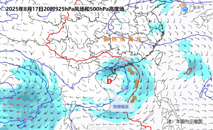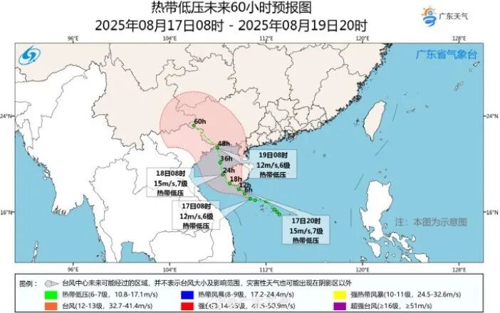 虽然这个南海热带低压目前大概率不会加强到台风命名的级别(热带风暴级),但预计17-19日,受南海热带低压影响,南部沿海、珠江三角洲中南部市县有大雨到暴雨局部大暴雨,雷雨时局地伴有8级左右短时大风。20日,广东省西部市县有中雷雨。