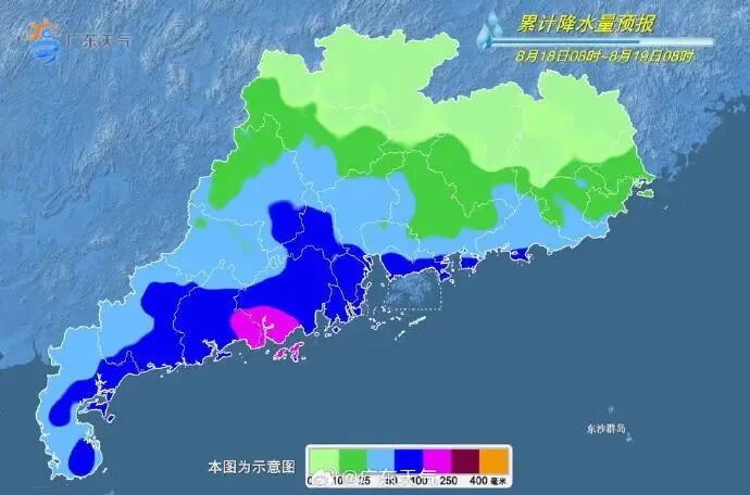 广东省气象台8月16日预计,17日至19日,受季风槽及南海热带低压影响,广东南部沿海、珠江三角洲市县有大雨到暴雨局部大暴雨,雷雨时局地伴有8级左右短时大风。