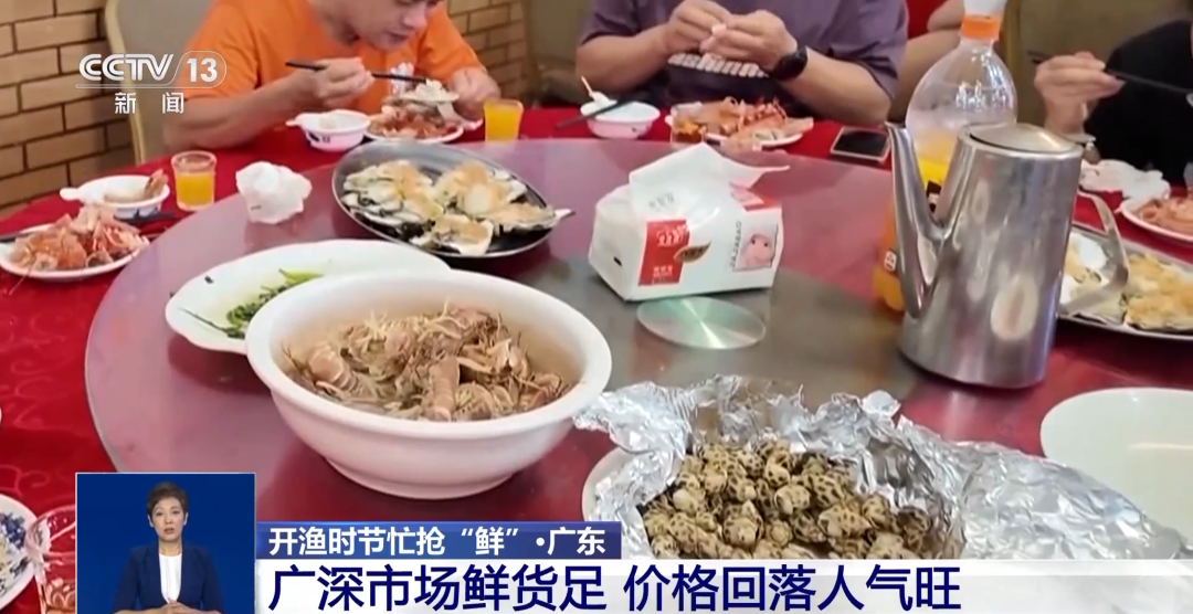 随着大批肥美的鱼、虾、蟹新鲜上市,当地常见海鲜价格降幅已达20%至40%,新鲜的各类海产品不仅丰富了市民餐桌,也带旺了市场人气。