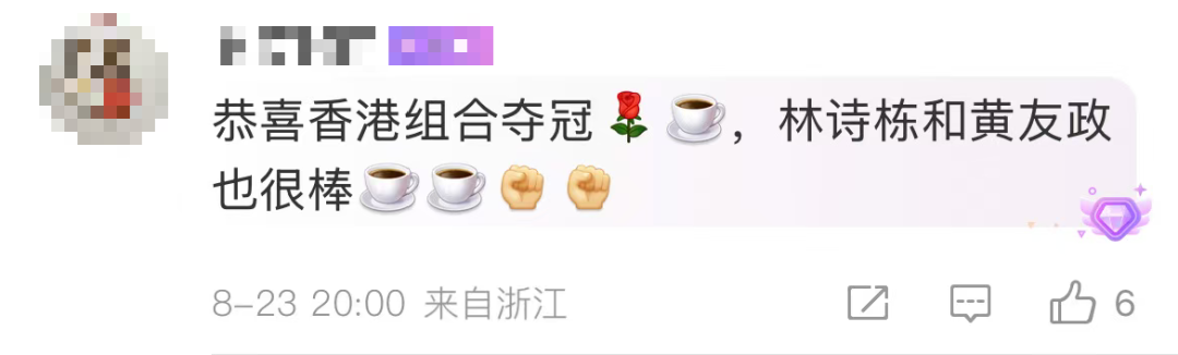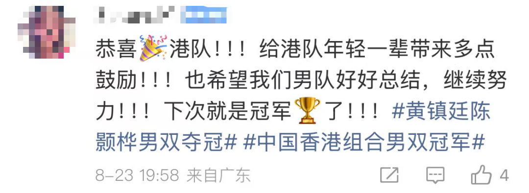 黄镇廷/陈颢桦夺冠后,许多网友也送上了自己的祝福。
