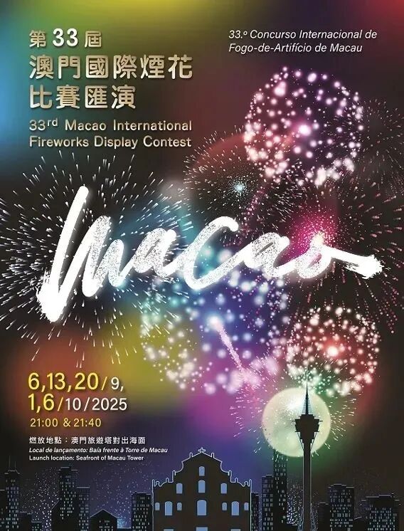 由澳门特区政府旅游局主办的第33届澳门国际烟花比赛汇演,将于9月6日至10月6日举行。来自全球10个国家的烟花公司,将倾力呈献绚丽烟花表演。澳门特区政府旅游局今日(21日)举行新闻发布会,介绍赛事亮点及多项延伸活动详情。