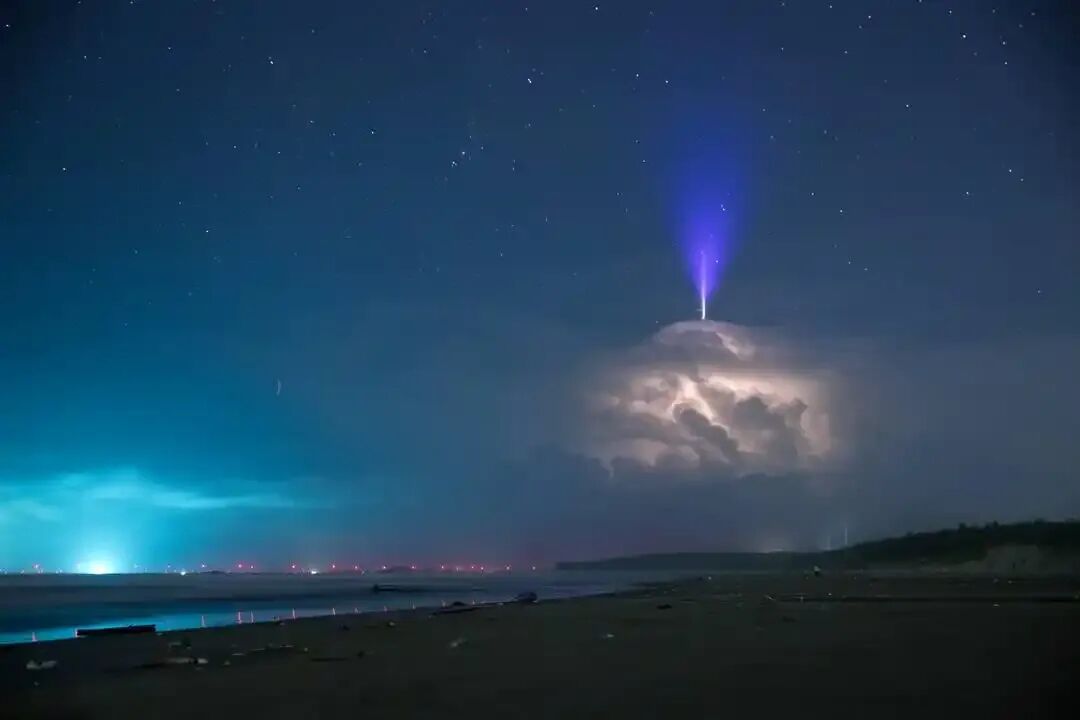 杨悦新建议,通常距离雷暴云体或雷暴核心100-300公里之间。“这个距离足以避开雷暴的危险区域,又能保证拍摄视角足够宽广,能看到高空放电现象。”太近,如小于50公里,容易被雷暴本身遮挡,且安全风险高,视角过大不利于捕捉高空现象。太远,如超过400公里,雷暴云和高空放电现象在视野中变小,容易被大气层削弱,拍摄难度增加。选择地势较高、无遮挡、空气透明度好的地方,比如山顶、高原等,有利于远距离拍摄。