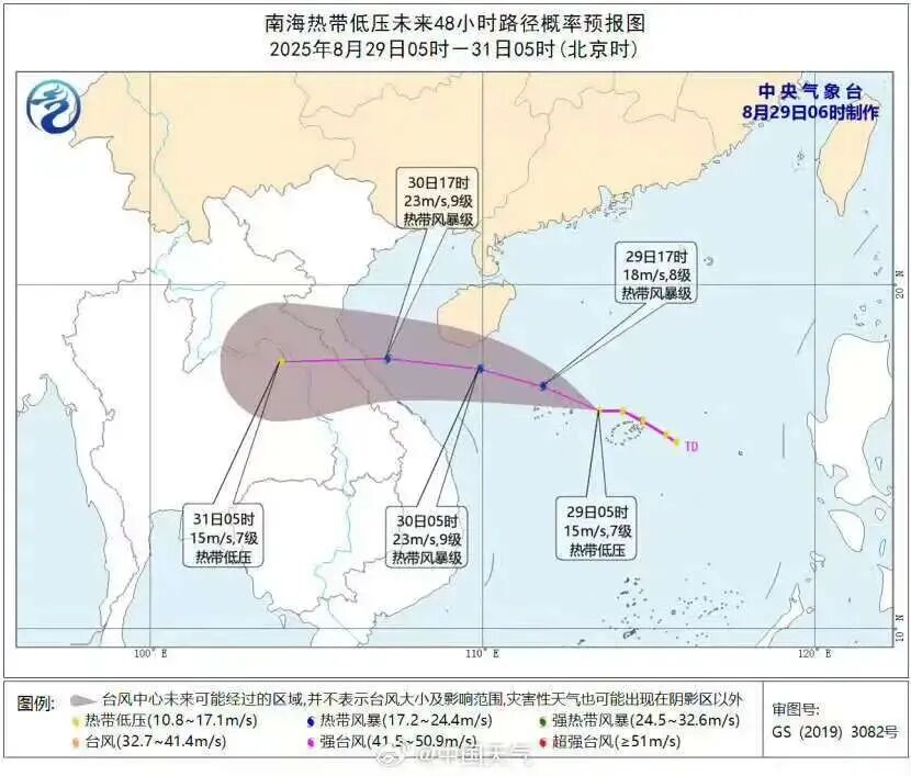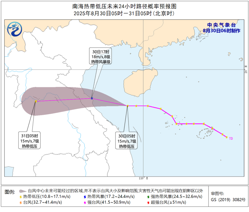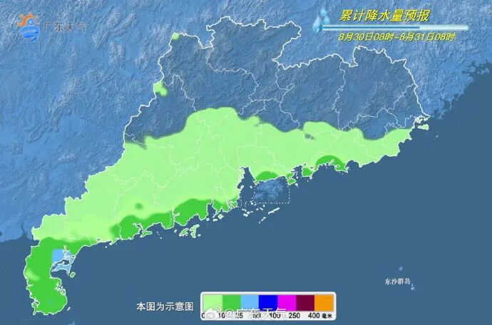 中央气象台预计,30日8时至31日8时,南海西部和北部的部分海域、西沙群岛和南沙群岛附近海域、北部湾、琼州海峡、广东中部和西部沿海、广西沿海、海南岛沿海有6-7级大风,其中南海西部的部分海域、海南岛西南部沿海、北部湾南部海域风力有8级,阵风9-11级。广东西南部沿海、广西南部沿海、海南岛南部有大到暴雨(50-90毫米)。