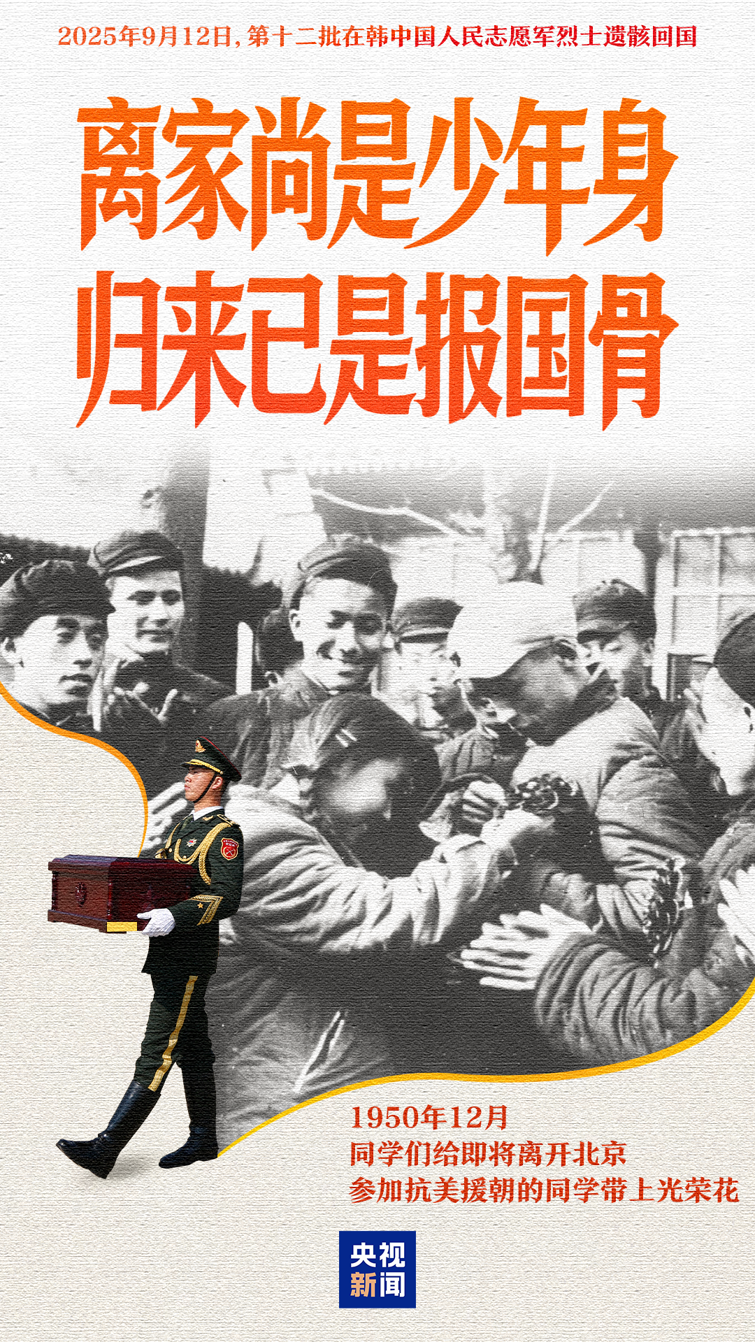 山河如愿,英雄回家今天(9月12日)第十二批30位在韩志愿军烈士遗骸将回归祖国这条回家路,他们走了七十余载……祖国从未忘记我们从未忘记山川同念,英雄回家!央视新闻发布MV《铭记》用歌声铭记保家卫国岁月致敬志愿军铁血征程山河无恙,接英雄回家!来源:总台央视新闻监制/胡翼 宋雪主编/张蓓 值班编辑/吕嘉往期推荐