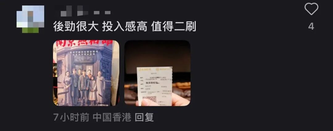 昨天(9月4日),以南京大屠杀为背景的电影《南京照相馆》在香港正式公映。截至昨晚7时,《南京照相馆》香港开画日票房暂收242,152港元。此前从8月28日起上映的优先场,短短六天已累积票房近180万港币,单日票房表现更胜多部正式上映的华语片。看完电影,不少香港观众深受触动。香港市民江女士表示,有了先烈的无畏付出,才有我们现在“say no”的底气!在社交媒体上,香港网友们也纷纷晒出票根并且分享自己的观后感:有香港网友留言:“建议所有中国人看一次,不仅中国人看,全世界的人都应该看!”导演申奥近日为电影作出更多解读,他指出英文片名《Dead to Rights》的直译就是“铁证如山、证据确凿”,跟电影想要传达的主题非常一致。另外一层意思是,光凭Dead to Rights这个词语,也会给人一种“向死而生、矢志不渝”的情绪。申奥称:“战争是全人类的悲剧。我们拍摄这个电影,除了让观众感受到极度的悲愤以外,更重要的是希望激发出观众心目中的一股能量,我们希望让观众化悲愤为力量,去激发出他们把祖国建设得更繁荣昌盛的勇气。”来源:大公文汇网