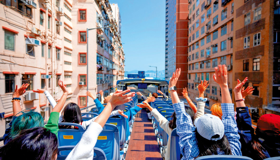 国庆中秋假期期间,众多内地游客涌入香港,感受双节氛围,体验香港特色文化。香港特区政府入境处最新数字显示,国庆假期前7天,内地游客入境人次超过129万,已打破去年纪录。这个假期,维港天际线、迪士尼、山顶缆车、海洋公园……传统的香港游热门“打卡点”依然备受游客青睐。同时,更多游客也开始探索更多香港Citywalk(城市漫游)新玩法,既避免了拥挤,也能更自由地进行深度探索。有人跟随电影游香港。旧油麻地警署、“九龙城寨光影之旅”展览……这些曾经出现在热门影视剧中的香港地标,吸引了不少游客前来打卡拍照,参观港式建筑、体验旧日时光。这个假期,乘坐敞篷双层观光巴士在高楼大厦间穿梭,成为很多游客的打卡项目。有人为了体验“落日飞车”的感觉,不惜排队等待3个半小时。还有人不满足于地面,把目光锁定到了香港上空。在昂坪山上,游客体验滑翔伞,从高空俯瞰昂坪草原和西贡海峡全景。国庆遇上中秋,香港张灯结彩,火龙飞舞。游客们赏花灯、看大坑舞火龙,在欢声笑语中,感受中国传统文化绵绵不绝的活力。香港旅游促进会总干事崔定邦表示,访港游客数目理想,中秋节庆活动例如彩灯会、大坑舞火龙等,对内地游客有吸引力。他指出,内地市场庞大,希望可以更多向西安、青岛等内地大城市宣传香港,吸引更多内地游客来港旅游。业界也会提供新玩法,让游客感到有新意。