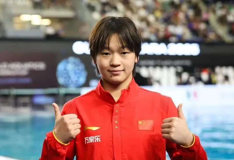 2025年5月3日,全红婵在世界泳联跳水世界杯总决赛女子10米台决赛后。