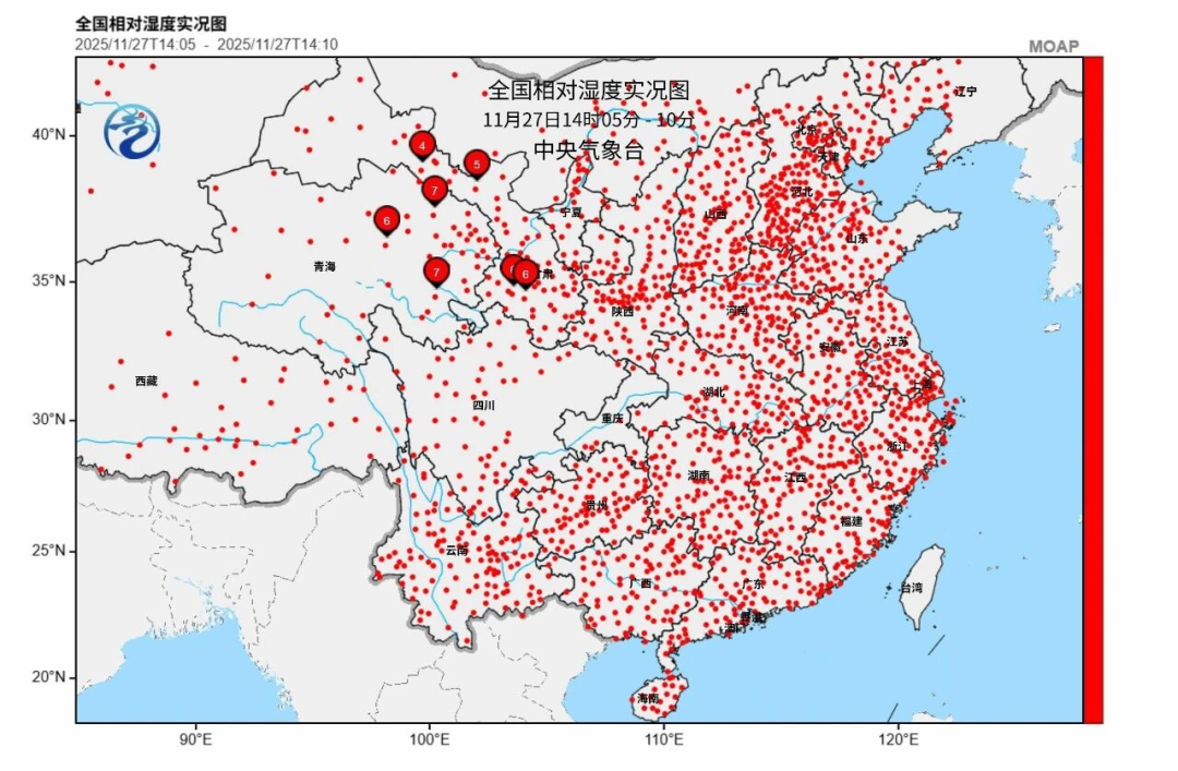 中国天气网提示,未来一周中东部大部雨雪偏少、空气干燥的格局仍将持续。随着干燥的北风一路南下,南方不少地方相对湿度甚至降至20%以下,干燥程度同期少见。