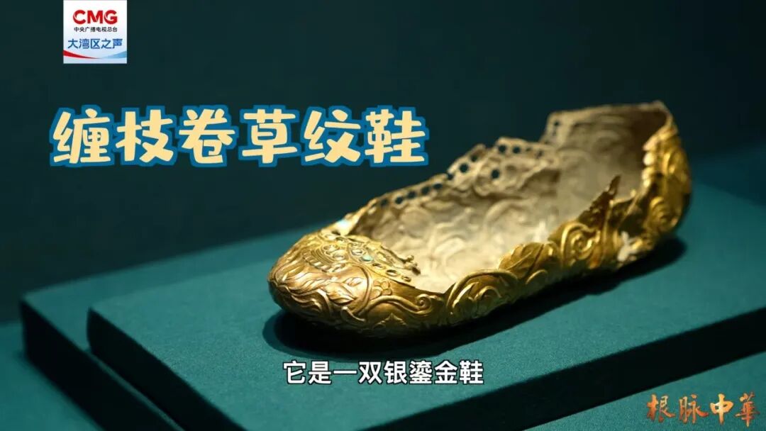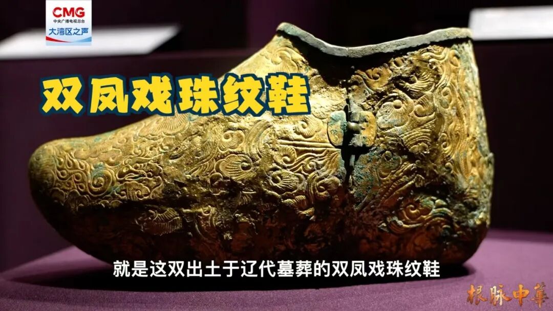 本次展览中,有两双鞋的设计格外特别。一双是吐蕃墓葬出土的缠枝卷草纹鞋,另一双是辽代的双凤戏珠纹鞋。这两双鞋最绝的是它的“可调节”设计:前掌和后跟是分开的,分别用银钉和合叶连接,这样鞋子就可以自由调节长短。这脑洞大开的构造揭示了它们的真实身份——墓主人的“往生限定款”。不同朝代出品,却采用了相近的制造方式,这两双鞋,既展现了古代工匠的前卫创意,也寄托了古人对永恒的极致浪漫想象。