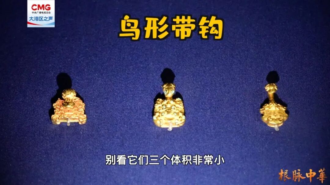 展览中的一组鸟形金带钩,堪称春秋战国时期的“潮流单品”!钩首呈鸟头造型,有的还顶着两只长耳朵,活脱脱是上古神鸟的“Q版手办”。它们采用中原的“块范法”铸造工艺,春秋战国时期中原的秦国贵族和草原部落贵族都在用它,小小的带钩,默默见证了草原与中原贵族们在这方寸之间的审美共鸣!