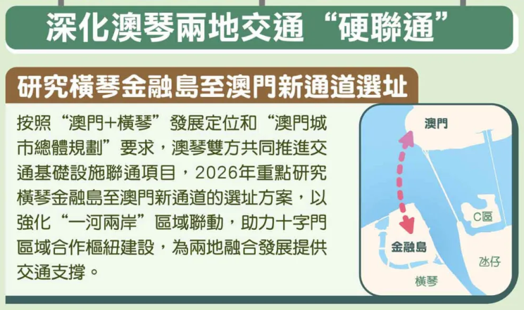 2026年琴澳将重点研究横琴金融岛至澳门新通道的选址方案。